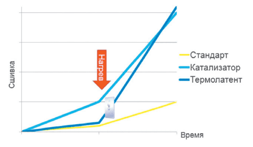 Рисунок 2. Термолатентная технология с использованием скрытого ускорителя, срабатывающего при воздействии повышенной температуры