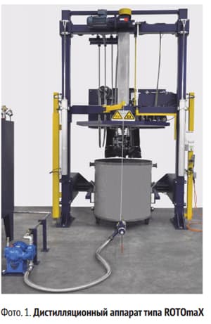 После очистки загрязненные моющие средства выпариваются в дистилляционном аппарате с помощью современных систем нагревания. Пары собираются в конденсаторе (холодильнике), а дистиллят поступает в отдельный резервуар. Твердые частицы, которые остаются в дистилляционном аппарате, удаляются в конце процесса и утилизируются в соответствии с существующими правилами.