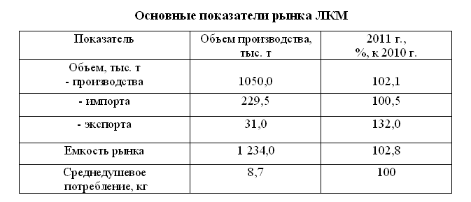 В качестве основных итогов 2011 г. необходимо отметить следующие тенденции на рынке ЛКМ: