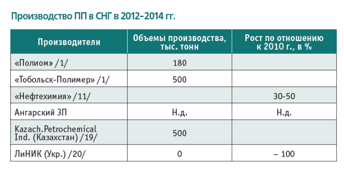 Заметим, что при внушительном влиянии на рынок и ПП-потенциал РФ (мощности удваиваются), в мире эти предприятия займут всего 5-6% новых вводимых мощностей. Т. е. переоценивать значение рынка и производственных мощностей СНГ не стоит: даже в СНГ они наверняка столкнутся с жесткой конкуренцией от новых китайских и восточных продуцентов.