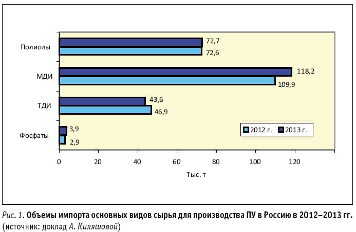 В Азии осенью 2013 года наблюдался значительный рост цен на полиолы для эластичных пен и другие простые полиэфирполиолы, что было вызвано прежде всего дефицитом олефинов – пропилена и этилена – из-за большого спроса в основных потребляющих сферах, а также дефицитом окиси пропилена, обусловленным недо статком мощностей и остановками производств на профилактические работы. В 2014 году ситуация будет в значительной степени зависеть от сырьевых рынков пропилена, этилена и их оксидов. В настоящее время цены остановились на высоком уровне, и в ближайшей перспективе снижения ожидать не стоит. Состояние рынка в секторе изоцианатов прогнозируется как относительно стабильное (с обычными сезонными колебаниями).