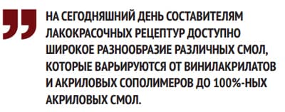 На сегодняшний день составителям лакокрасочных рецептур доступно широкое разнообразие различных смол, которые варьируются от винилакрилатов и акриловых сополимеров до 100%-ных акриловых смол. Каждая из них имеет свои уникальные свойства, отмечает Дейв Хелиджентал, менеджер по маркетингу в Dunn-Edwards. «Среди данных продуктов, − подчеркивает вице-президент по разработкам KellyMoore Тодд Вирдзек, − именно 100%-ные акриловые смолы применяются при производстве большинства высококлассных фасадных красок, поскольку они отвечают всем требованиям к стойкости и содержанию ЛОС». Вдобавок к хорошему сопротивлению истиранию и потери блеска акриловые смолы обеспечивают пластичность материалов, что крайне важно при работе с древесиной, которая подвержена температурным перепадам и изменениям уровня влажности.