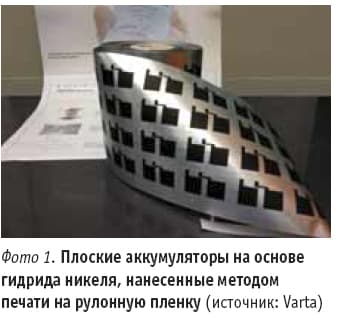 С применением технологий печати и напыления получают разнообразные электронные или фотонные функциональные поверхности в форме пленок и покрытий, которые могут наноситься на всевозможные текстильные и прочие изделия с любыми радиусами кривизны. При этом они выполняют роль емкостных датчиков или световых полей достаточно большой площади в виде органических светодиодов, комплексных датчиков для измерения важных параметров окружающей среды или медицинских показателей, таких как температура и влажность. Кроме того, они могут использоваться в качестве легких и гибких органических элементов солнечных батарей или плоских печатных аккумуляторов (фото 1) для обеспечения энергией миниатюрных приборов. Таким образом, спектр электроники и цифровой техники в перспективе уже не будет ограничиваться персональными компьютерами, планшетами, мобильными телефонами, игровыми приставками и тому подобными устройствами в специфическом исполнении. Новые системы могут быть без образования соединительных швов интегрированы в любые подходящие для этой цели изделия. Это открывает новые, ранее неизвестные и даже весьма экзотические возможности их встраивания в «умные» объекты и способствует расширению их взаимодействия с самоуправляемыми и автономными цифровыми системами в «интернете вещей».