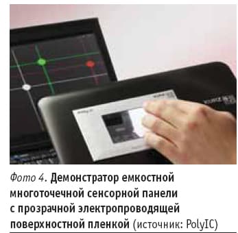 Применение «умных» упаковок с изготовленными печатным способом и активируемыми с помощью радиосигналов этикетками (так называемыми электронными метками) могут способствовать существенному повышению эффективности процессов обращения с товарами и решению логистических задач. Кроме того, они могут с помощью нанесенных методом печати и динамически актуализируемых полей показывать потребителям даты конечного использования продуктов, сигнализировать о наличии перерывов в охлаждении чувствительных продуктов или гарантировать подлинность высококачественных изделий при условии обеспечения связи с данными о прослеживаемой цепочке поставок. В этой области ведущее место занимает немецкая компания PolyIC, специализирующаяся на разработке электронных меток, печатных антенн для них, а также электропроводящих прозрачных органических пленок (фото 4).