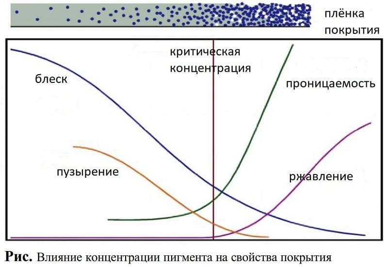 2) Многие антикоррозионные пигменты работают посредством частичной растворимости, поэтому покрытие может быть разработано с некоторой проницаемостью (близко к критической по объёму концентрации пигментов)