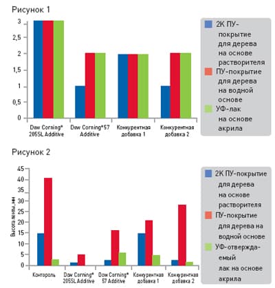 Силиконовые полиэфиры на протяжении нескольких лет применяются в качестве модификаторов, усиливающих смачиваемость, выравниваемость и гладкость покрытия. Низкий молекулярный вес и высокая гидрофильность этих материалов благодаря полиоксиалкиленовым группам в боковых цепях позволяет достигать хорошей совместимости в рецептурах покрытий для дерева и покровных лаков. Силиконы с высоким молекулярным весом придают поверхности гладкость, которой ранее достигнуть не удавалось. Dow Corning предлагает модифицирующую добавку 205SL Additive, она универсальна по своему применению: с ее помощью можно придать шелковистость составу на основе органических растворителей, на водной основе и радиационно-отверждаемым составам.