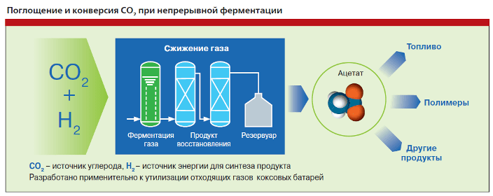 Перспективные направление «зеленой химии» — ферментация промышленных газов с целью получения полупродуктов синтеза этанола, ацетона, бутанола и др.