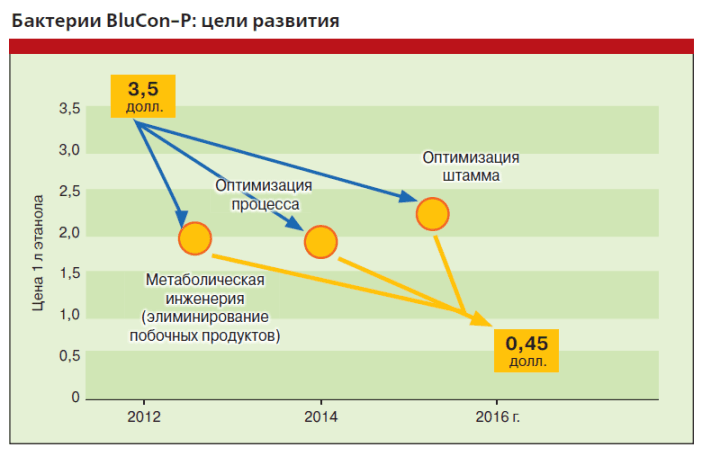 Сегодня производство биоэтанола уже рентабельнее производства этилового спирта гидратацией этилена. Последний процесс мало где в мире используется. Если биотехнология этанола будет усовершенствована благодаря развитию генной инженерии, то его стоимость к 2016 году снизится с 3 долларов за галлон до 0,5, тогда цена на биоэтанол приблизится к выгодной для производства этилена и полиэтилена. Такая схема позволит значительно потеснить нефть в качестве основного сырья для нефтехимической промышленности и перейти к возобновляемым сырьевым источникам.