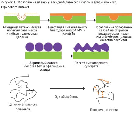 Чем больше предприятия и потребители узнают о биопродуктах, тем сильнее растет их лояльность к ним. Водоосновные смолы биологического происхождения демонстрируют производительность, сравнимую с их небиологическими аналогами и традиционными покрытиями на основе растворителя. Кроме того, большинство полимеров биологического происхождения конкурентоспособно в плане стоимости с другими химикатами на основе твердой смолы. Поскольку биоматериалы не зависят от колеблющихся цен на нефтехимикаты, их стоимость, как правило, остается наиболее стабильной. Понимание преимуществ производительности биоматериалов требует знания химического состава биологических возобновляемых материалов. Покрытия из биосмол − это обычно алкид-полиэстеровые смолы, модифицированные жирными кислотами, либо уретаны, модифицированные маслом (OMU). Обе технологии − алкидная и уретановая − используются достаточно давно. Однако в связи с постоянным ужесточением норм содержания ЛОС и профилированием охраны окружающей среды, покрытия на основе растворителей сегодня составляют лишь незначительную часть рынка, в противоположность той, что они занимали около 30 лет назад. Возможность перейти от растворителя к водной основе, при этом не потерять в производительности, представляет основную трудность для разработчиков. Тем не менее, ряд компаний предлагает водоосновные аналоги биовозобновляемых смол, которые соответствуют требуемым характеристикам производительности. Основное преимущество биосмол − способность самостоятельно образовывать поперечные связи через процесс окисления после испарения растворителя. Жирные кислоты, обычно используемые в составах алкидов и OMU, имеют ненасыщенные участки, которые при контакте с воздухом формируют межцепочечные связи. Алкидные и уралкидные раствороосновные системы наращивают большую часть их молекулярной массы в процессе окисления. Из-за этого они имеют низкую начальную молекулярную массу. Они также демонстрируют хорошие характеристики текучести и выравнивания и хорошую межцепочечную диффузию.