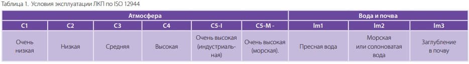 международный стандарт ISO 12944. Стандарт включает шесть основных классов коррозийной среды (6 – для условий, связанных с воздействием атмосферы, 3 – для условий, связанных с воздействием воды и почвы; в основу классификации положена скорость корродирования стали и цинка в первый год воздействия среды).