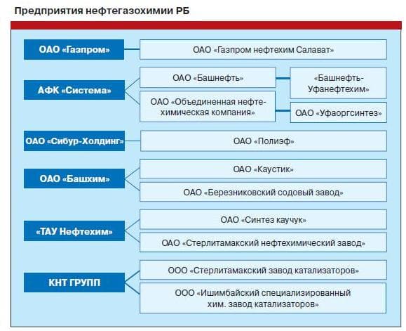 В Башкортостане имеется мощный нефтегазохимический комплекс, который представлен такими крупными компаниями, как «Башнефть», «Газпром», «Сибур», «Башхим». В регионе действует объединение отраслевых учреждений образования и науки, предприятий машиностроения и строительства, организаций, занимающихся проектированием, инжинирингом и сервисом. На «Большой химии — 2012» состоялось их объединение в консорциум.
