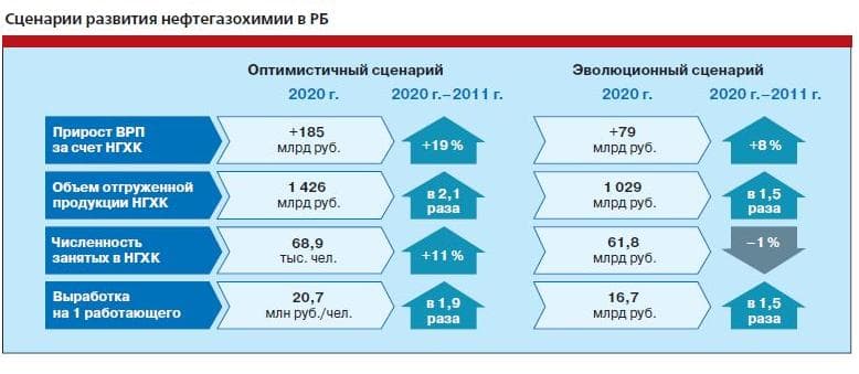 Что касается Башкортостана, то республика занимает пятое место в стране по объему добычи нефти, первое — по объему ее глубокой переработки, четвертое — по объему производства продукции химической промышленности. Вместе с тем, по глубокой переработке нефтегазохимического сырья позиции РБ не так высоки, как хотелось бы — 12 место по выпуску пластмассовых изделий, и всего 16-ое — по резиновым изделиям. Поэтому при разработке стратегии развития нефтегазохимии РБ до 2020 года акцент в первую очередь сделан на увеличение глубины переработки нефтехимического сырья.