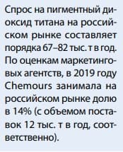 Организовывать же производство диоксида титана с амбициями обслуживания только внутреннего российского рынка не вполне целесообразно, поскольку, на самом деле, он относительно небольшой по объему, с устоявшейся структурой потребления и расстановкой сил.