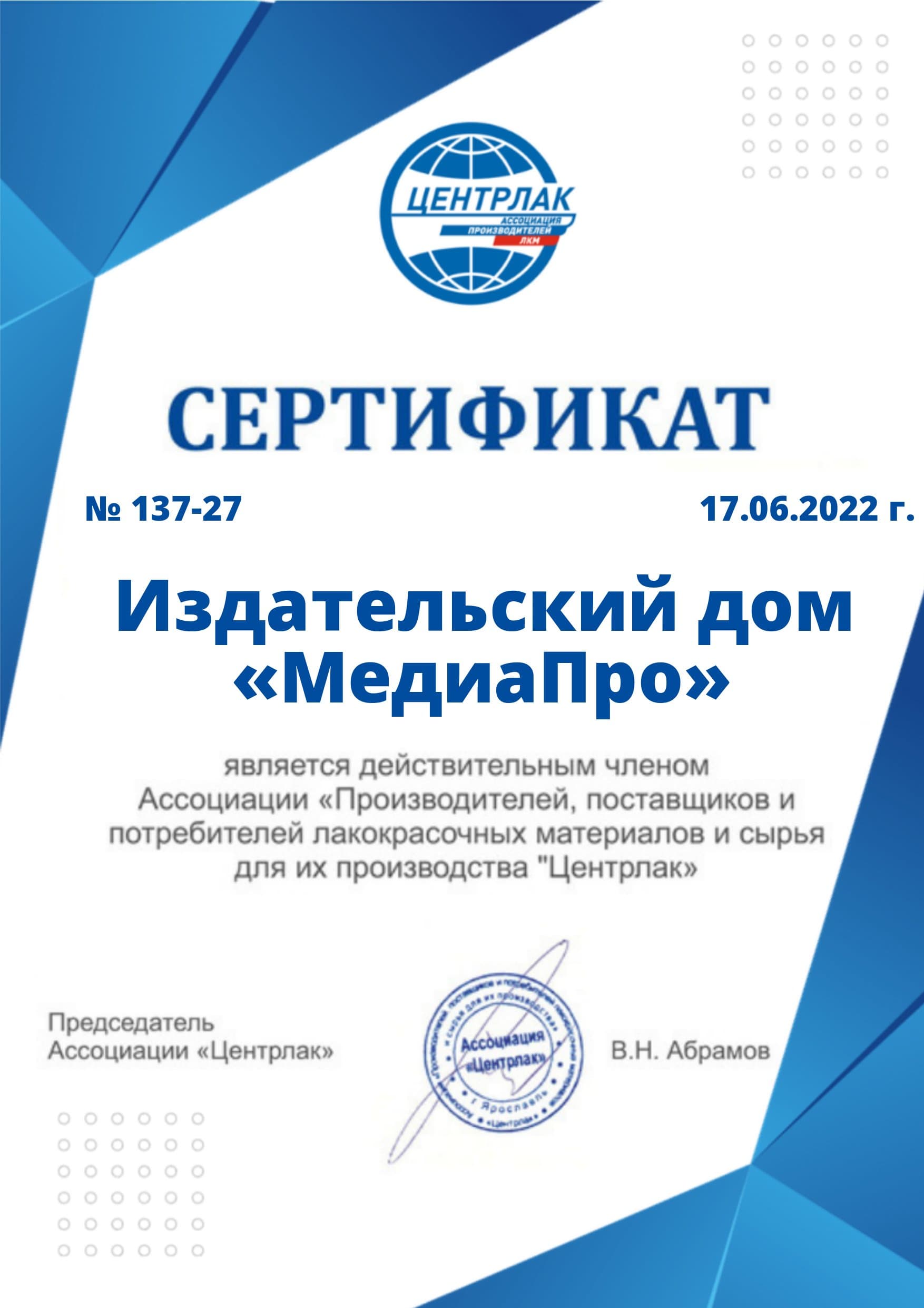 Компания «МедиаПро» стала членом Ассоциации «Центрлак»