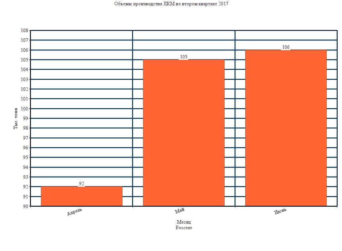 Одной из динамично развивающихся сфер в России стала лакокрасочная промышленность. За полгода предприятия произвели 501 тыс тонн продукции «материалы лакокрасочные на основе полимеров», что на 8,8 % больше аналогичного показателя 2016 года. В июне объемы выпуска составили 106 тыс. тонн – это + 5 % к маю 2017 года.