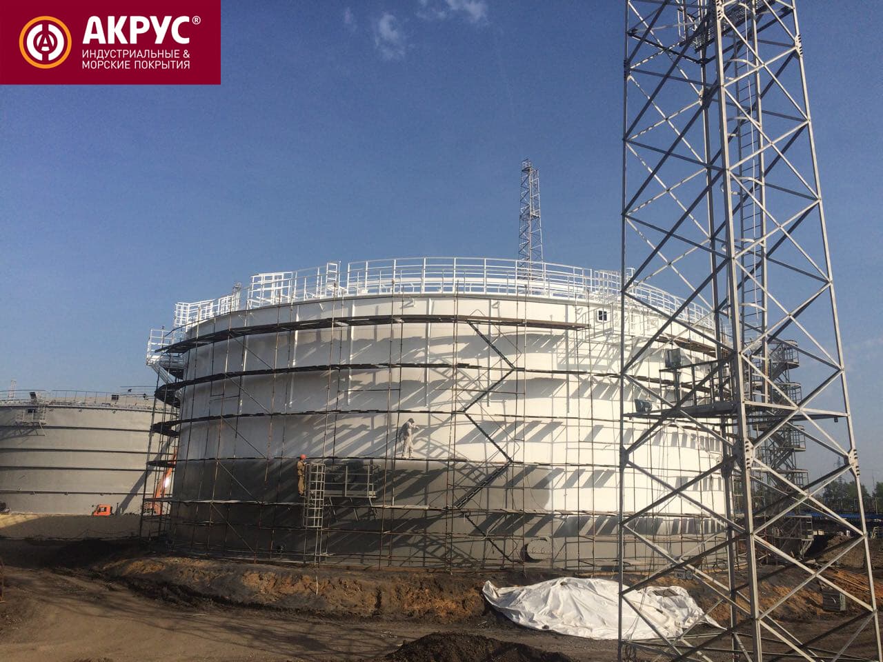 Окраска трех резервуаров емкостью по 10 тысяч кубометров.