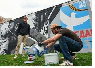 Художники украсили фасады зданий к 70-летию Великой Победы.