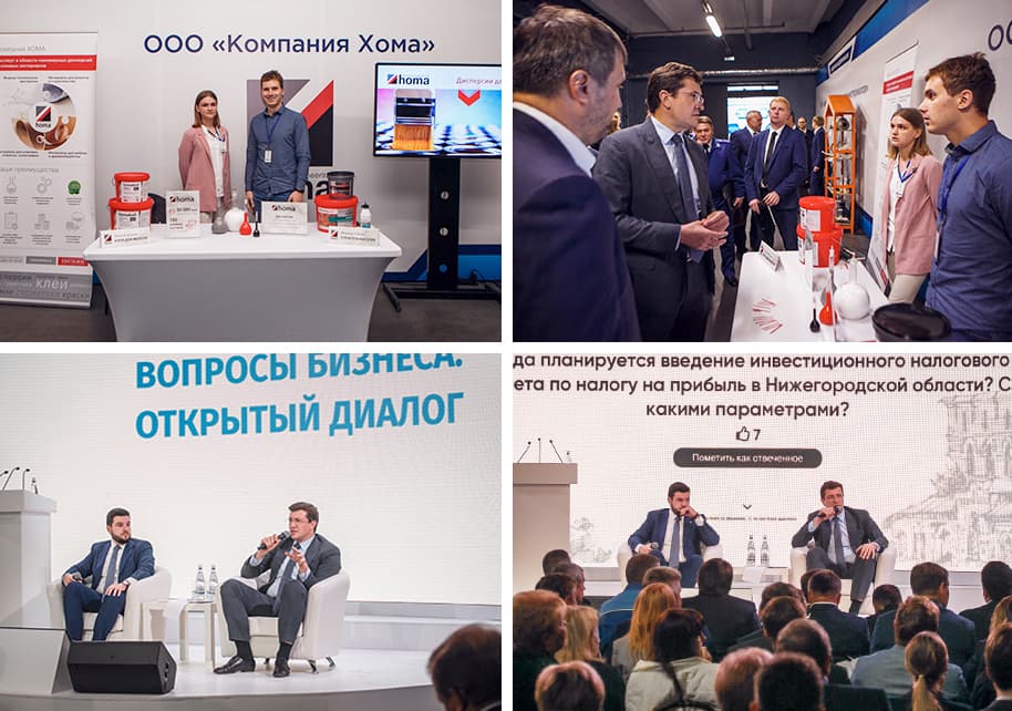 Представители компании «Хома» приняли участие во встрече губернатора Нижегородской области Глеба Никитина с предпринимателями региона. Встреча «Вопросы бизнеса: открытый диалог» состоялась в конце августа в Дзержинске на территории ДПО «Пластик».