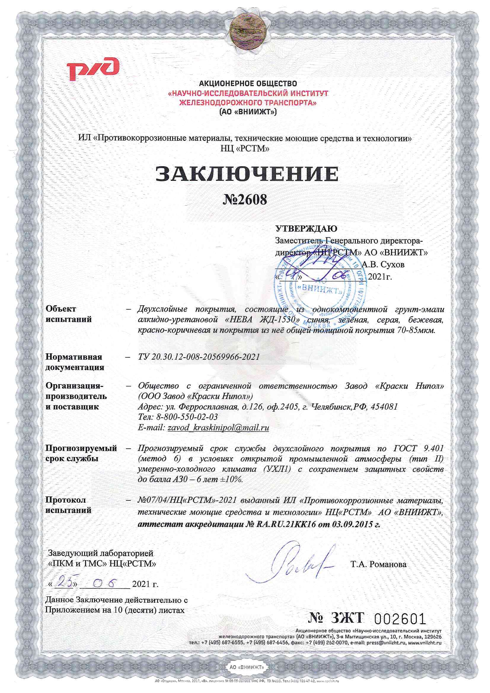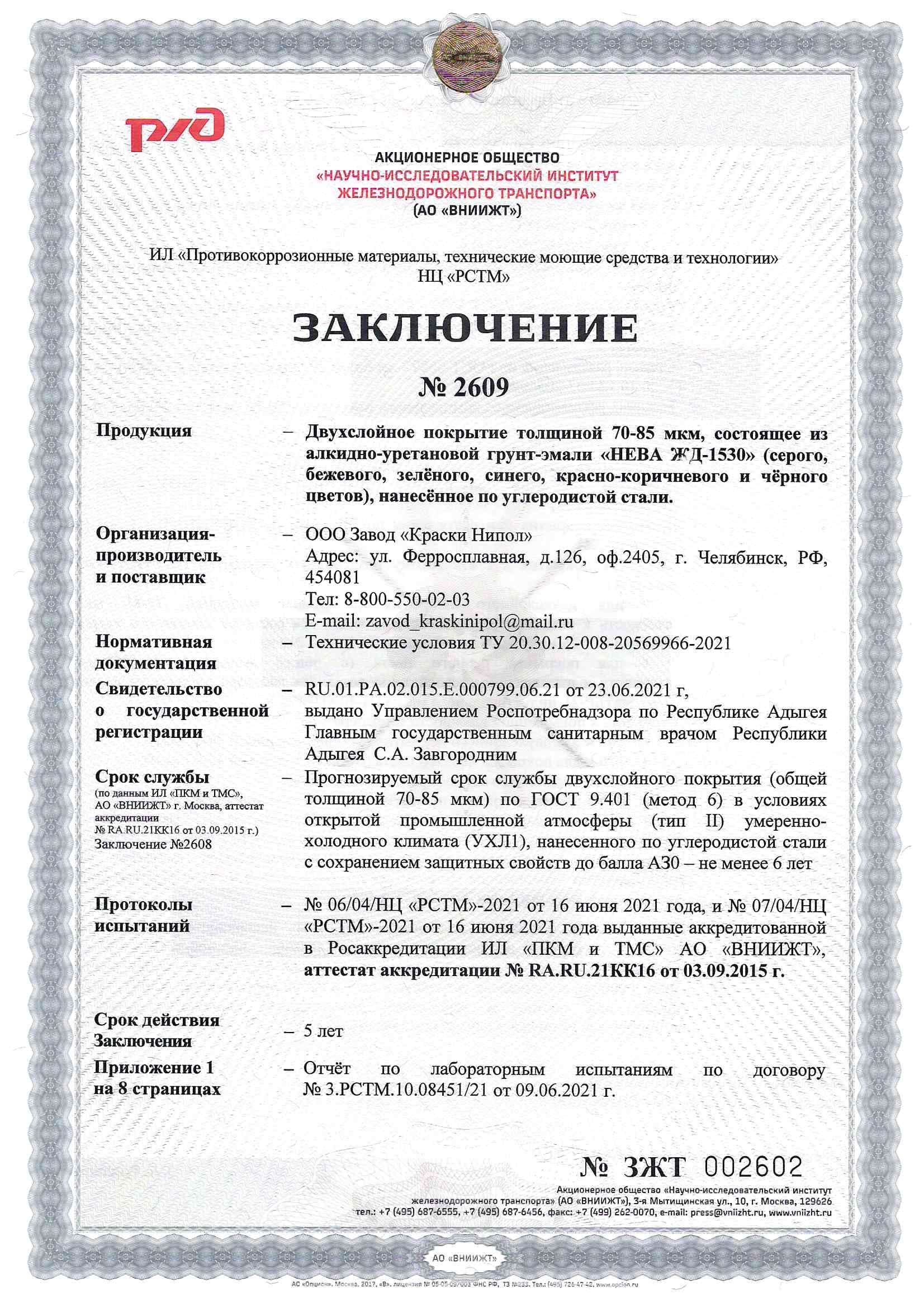 Грунт-эмаль НЕВА ЖД-1530 аккредитована в ВНИИЖТ!