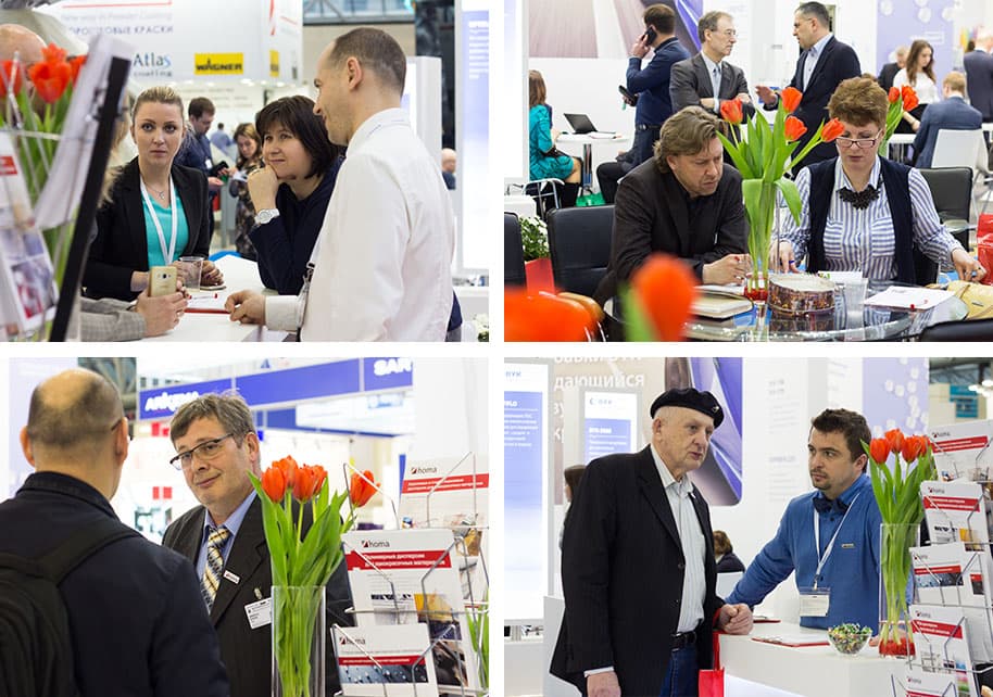 За четыре дня выставки стенд Компании ХОМА посетили около 200 действующих и потенциальных партнеров, в том числе из-за рубежа. Основные вопросы, которые интересовали гостей – компоненты для рецептур ЛКМ, антикоррозийные составы, пропитки для нетканых материалов, связующие для герметиков.