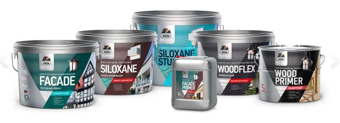 Линейка в настоящее время включает материалы для финишной отделки фасадов: краски FACADE и SILOXANE с силоксаном, фасадную штукатурку SILOXANE FACADE и грунтовочные средства FACADE PRIMER и WOOD PRIMER.