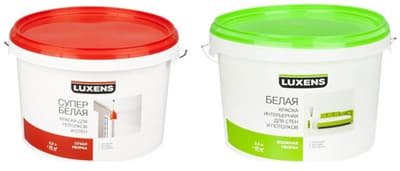 В водной линейке лакокрасочных материалов Luxens представлены краска для потолков и стен в базе 1 под колеровку в светлые тона (ее также можно использовать в исходном виде для окраски потолков); краски с возможностью сухой и влажной уборки и специальная краска для ванных комнат и кухонь с возможностью мытья очищающими растворами.