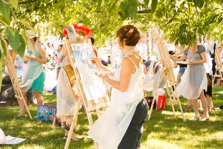 Целая армия любителей живописи, несмотря на небывалую жару, собралась 4 июля в парке искусств «Музеон», чтобы поучаствовать в открытом массовом пленэре «Твори, как Моне» и нарисовать собственную картину красками düfa.