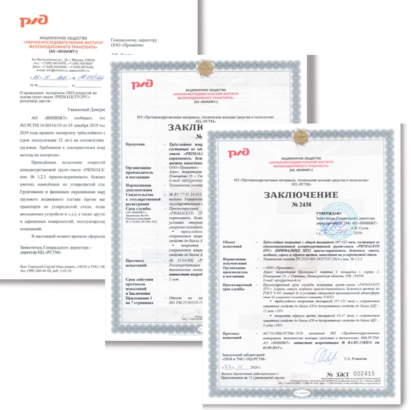 Положительное заключение ВНИЖТ на PRIMALKYD ZPU