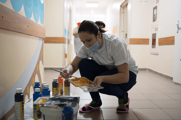 За время реализации проекта было изменено цветовое и световое оформление отделения: 600 квадратных метров стен, включая коридоры, игровое помещение и учебный класс, были расписаны красочными рисунками при помощи более чем 70 волонтеров из Тулы, Тульской области и Москвы. Пространство с правильной цветовой палитрой поднимает настроение, придает силы, снимает психологическое напряжение, что напрямую влияет на самочувствие ребенка.