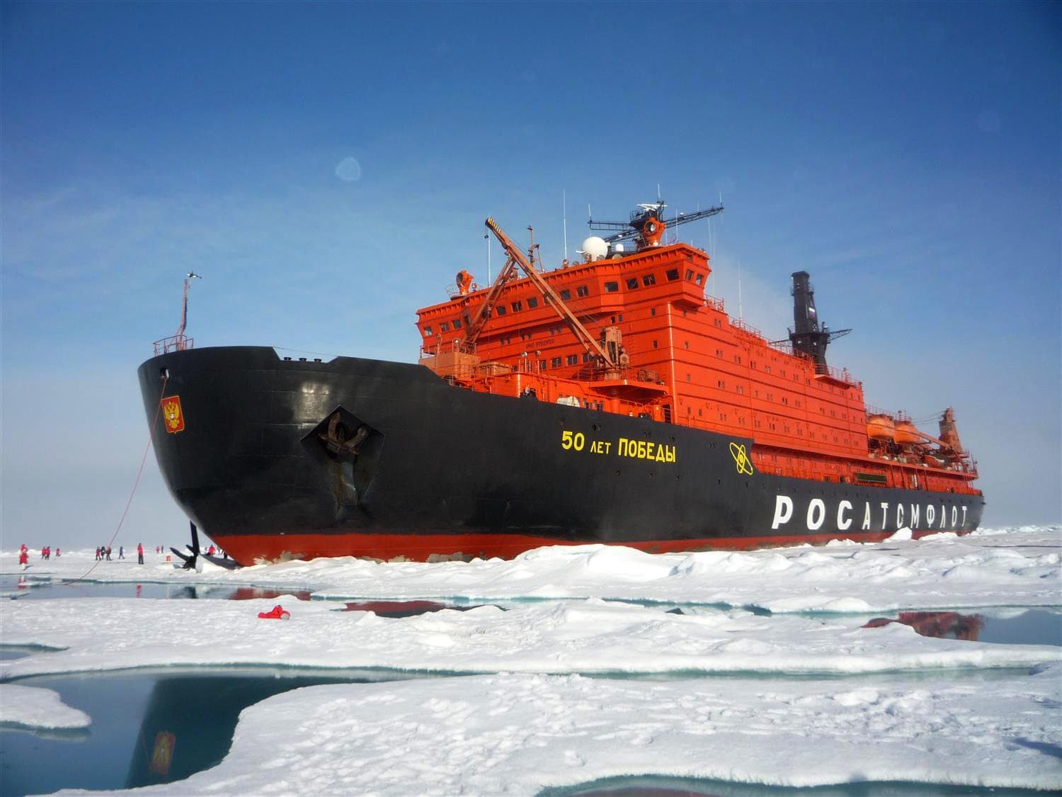 «50 лет Победы» — атомный ледокол класса «Арктика», восьмой по счету атомный ледокол, построенный на Балтийском заводе и на сегодняшний день — крупнейший в мире. Расчётная максимальная толщина льда, которую должен преодолевать ледокол — 2,8 м (по факту - 2,25 м).