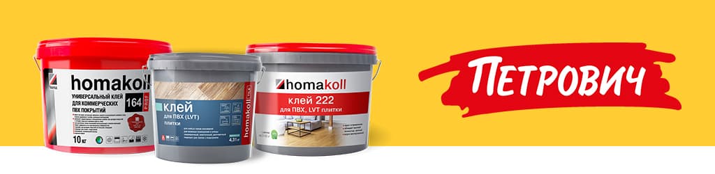В ассортименте «Петровича» - клеи для укладки ПВХ-плитки, применяемые в различных условиях, а также составы для коммерческих и рулонных покрытий. Найти товар на онлайн-площадке несложно: достаточно ввести название продукции в поисковой строке. Среди прочих удобств для потребителей — выбор удобного способа покупки, включая call-центр, сайт, мобильное приложение, магазин; а также эксосистема бесплатных цифровых сервисов, позволяющая решать все вопросы на любом этапе строительства и ремонта. Клиента в данном случае сопровождают как в выборе товара, так и в поиске подходящих специалистов.