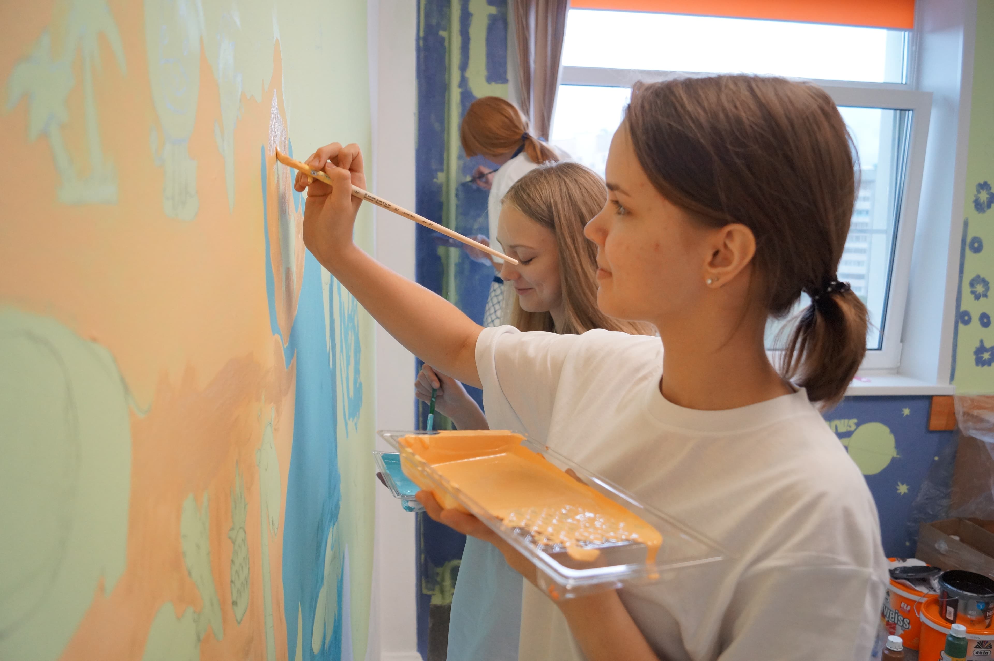 Благотворительный фонд помощи тяжелобольным детям «ЖИВИ» в рамках проекта «Мир в красках» оформил стены учебного класса тульской детской областной клинической больницы в отделении гематологии с помощью акриловых красок düfa.