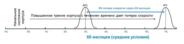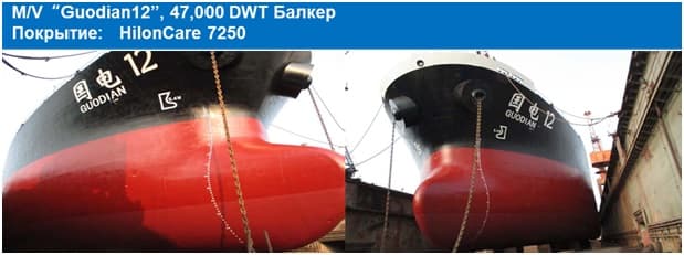Эффект противообрастания и экономии топлива зависит от типа покрытия, скорости судна и соотношением времени стояния к плаванию. С учетом имеющегося опыта были разработаны противообрастающие покрытия HilonCare 7380 для тихоходных судов со скоростью менее 10 узлов, покрытия HilonCare 7350 для судов со скоростью 12-18 узлов и покрытия HilonCare 7300 для судов со скоростью выше 18 узлов. Компания Hilong изучала данный вопрос на собственных покрытиях совместно с клиентами. По оценкам экспертов было установлено, что использование в течении 60 месяцев противообрастающих покрытий HilonCare приводило к снижению потери скорости хода судов примерно на 4%. С учетом того, что компенсация снижения скорости на 1% процент требует увеличение расхода топлива на 3%, суммарная экономия горючего может составить до 12%.