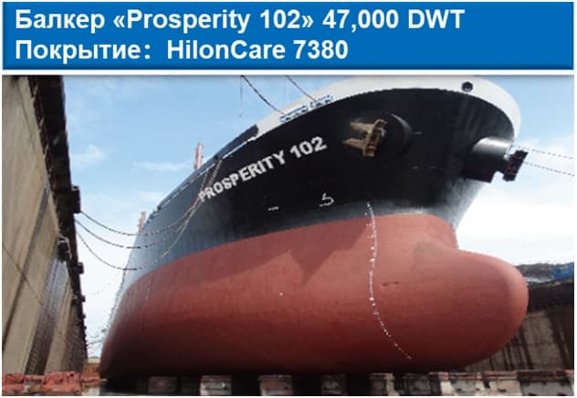 Серия противообрастающих покрытий HilonCare 7300 на основе силилметакрилатного сополимера гидролизного типа, содержащие кремнийорганические соединения улучшает гидрофобные свойства, а низкая шероховатость поверхности гарантирует экономию топлива до 12%. Покрытие обеспечивает прогнозируемый стабильный линейный уровень полирования и защиту от обрастания до 90 месяцев. Подходит для ремонта и нового строительства.