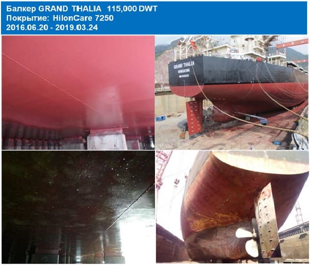 Серия противообрастающих покрытий HilonCare 7200 на основе сополимера акрилата меди и силилметакрилата обеспечивают прогнозируемый стабильный линейный уровень полирования и надежной защиты от обрастания на срок 60-90 месяцев. Подходят для ремонта и нового строительства.