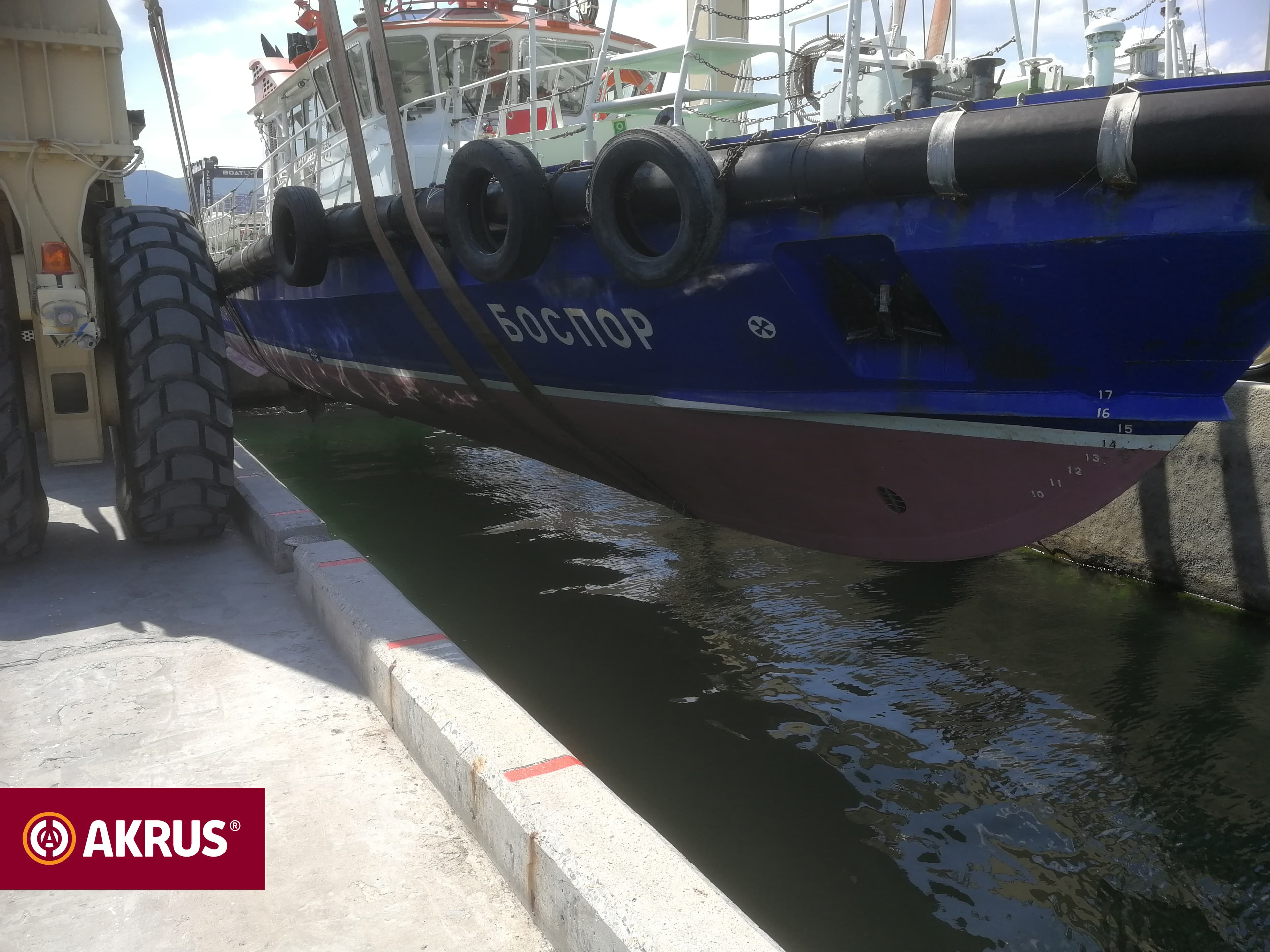 25 мая 2018 года в порту г. Новороссийск был произведен доковый подъем р/к «Боспор» с целью инспекции подводной части корпуса судна на предмет нанесения необрастающего покрытия торговой марки АКРУС®, произведенного российской компанией ООО «АКЗ покрытия».