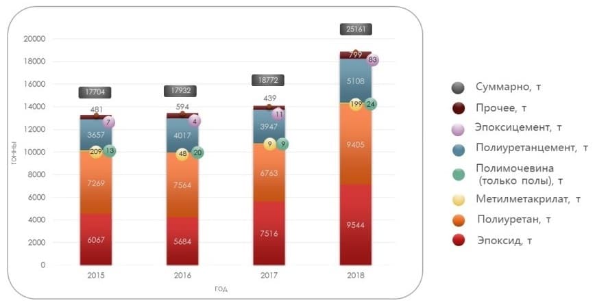 По мнению участников рынка, рост потребления связан с отложенным спросом предыдущих лет, а также с тем, что многие объекты должны были быть завершены к чемпионату мира по футболу 2018 года. Интерес потребителей к современным высокотехнологичным материалам растет как в промышленном, так и в коммерческом сегменте недвижимости. Декоративные возможности полимерных полов привлекают все больше новых сторонников.