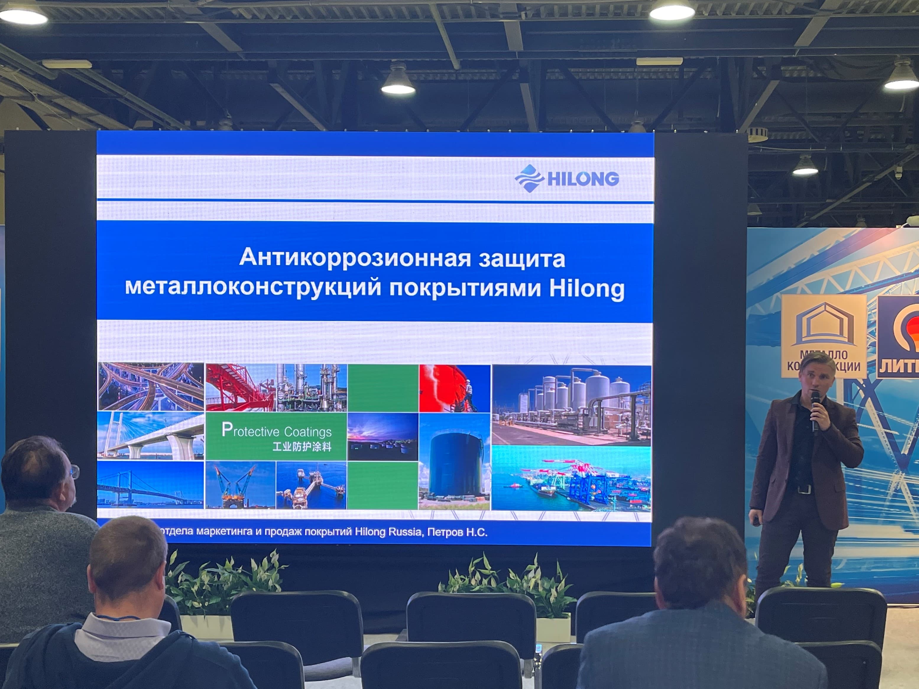 Начальник отдела маркетинга и продаж «ТД Хайлон-Рус» Никита Петров рассказал о состоянии и проблемах рынка защитных антикоррозионных покрытий, о важности использования и критериях выбора надежных систем покрытий и их поставщиков, также представил ассортимент и опыт применения покрытий Hilong для защиты металлоконструкций. Краски Hilong имеют большой опыт применения для защиты различных промышленных объектов, таких как объекты транспортной инфраструктуры, объекты топливно-энергетической отрасли, трубы и т.д.. Все материалы соответствуют требованиям как мировых, так и российских стандартов.