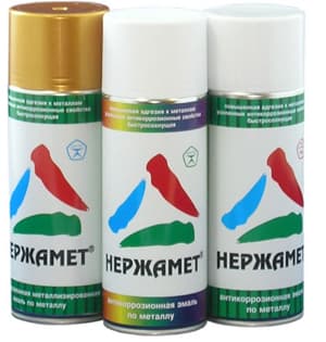 Аэрозольная краска «Нержамет» – это быстросохнущая эмаль по металлу, упакованная в специальную емкость (баллончик) под давлением. Упаковка обеспечивает удобство использования краски без применения специальных приспособлений.