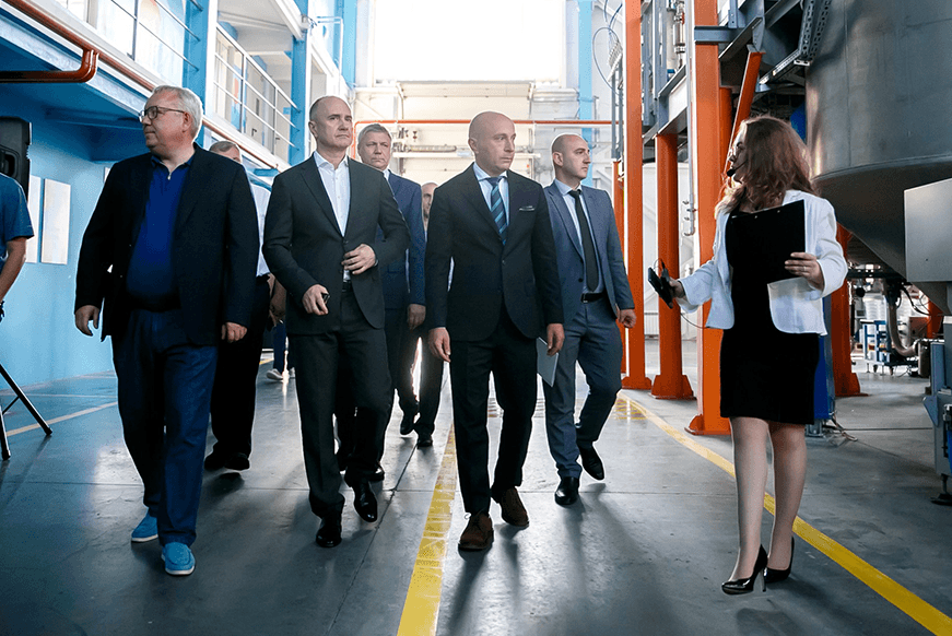 Григорий Шифрин открывает новую линию на заводе О3-Коутингс в Ростовской области.