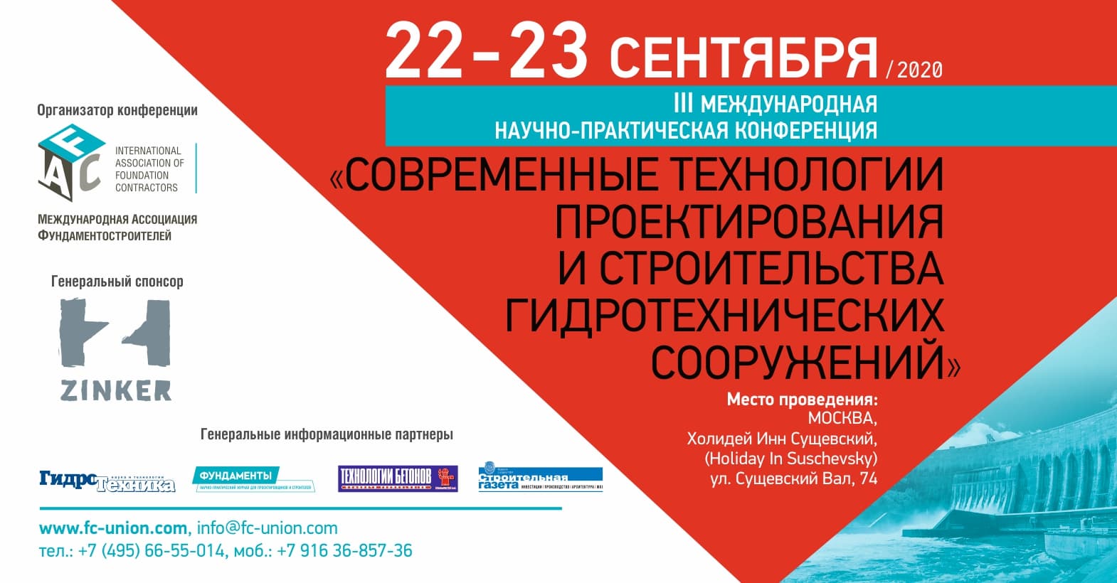 III Международная научно-практическая конференция «Современные технологии проектирования и строительства гидротехнических сооружений», 22-24 сентября 2020 г, Москва.