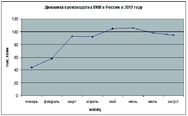 Предприятия с января по август произвели 694 тыс. тонн продукции «материалы лакокрасочные на основе полимеров» – это на 9,1 % больше аналогичного показателя прошлого года. При этом выпуск ЛКМ сократился на 3,4 % по сравнению с июлем 2017 года и составил 95 тыс. тонн или на три тыс. тонны меньше.